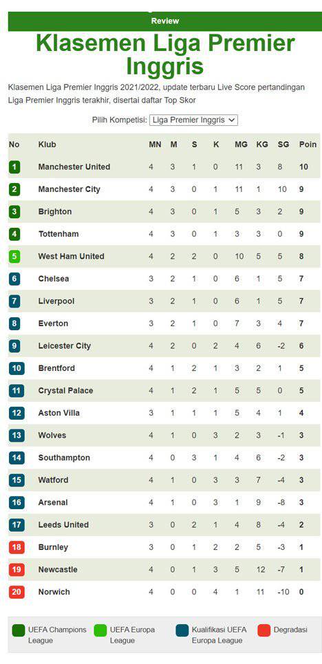 Klasemen Sementara Liga Inggris 2021 2022 Manchester United Puncak Sang Juara Terpuruk Bicara Berita
