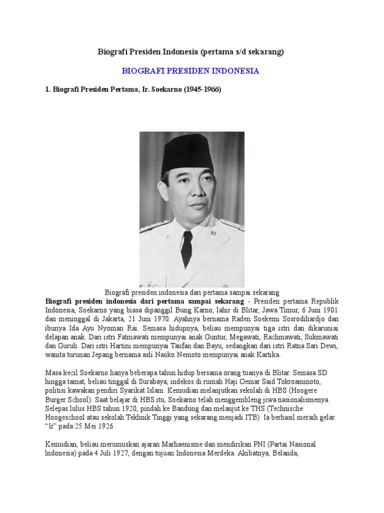 Biografi Ir Soekarno Presiden Pertama Indonesia Official Website Initu Id