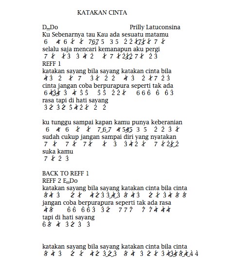 Not Angka Katakan Cinta Prilly Latuconsina Paling Lengkap