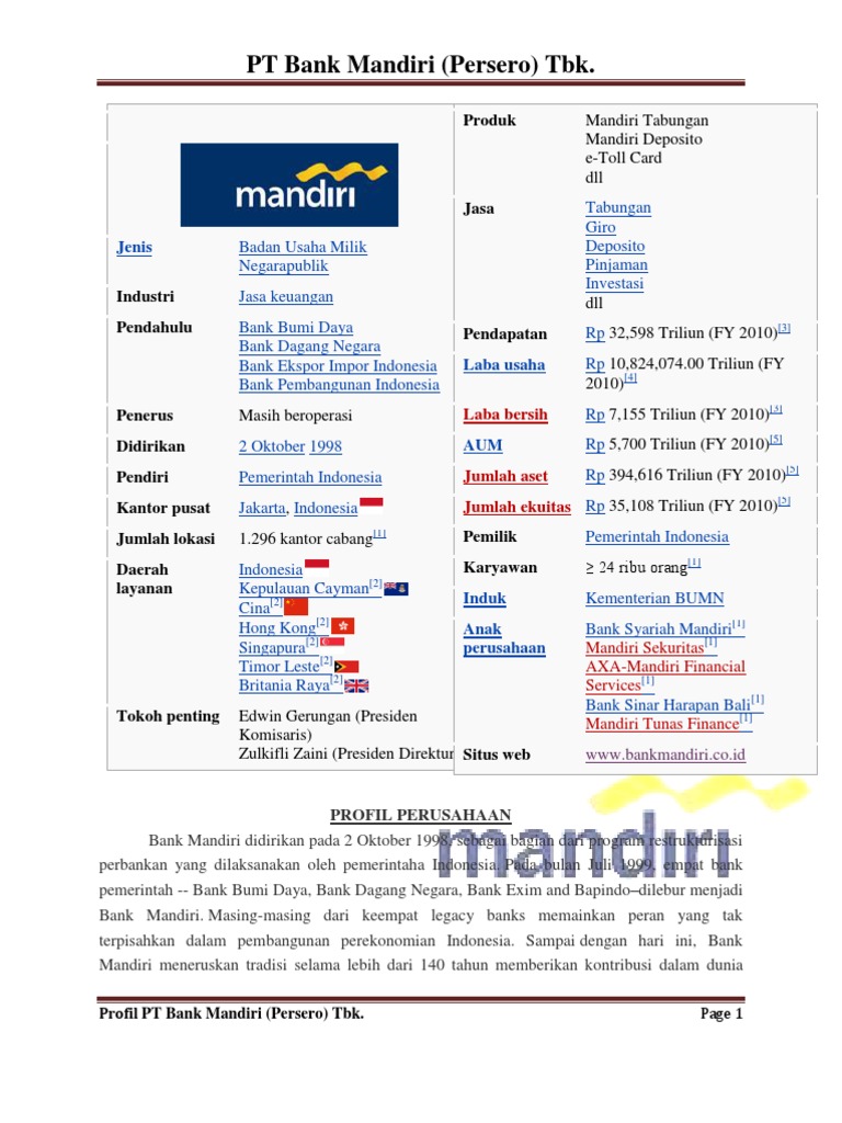 Profil Bank Mandiri Persero Tbk Pt Qerja