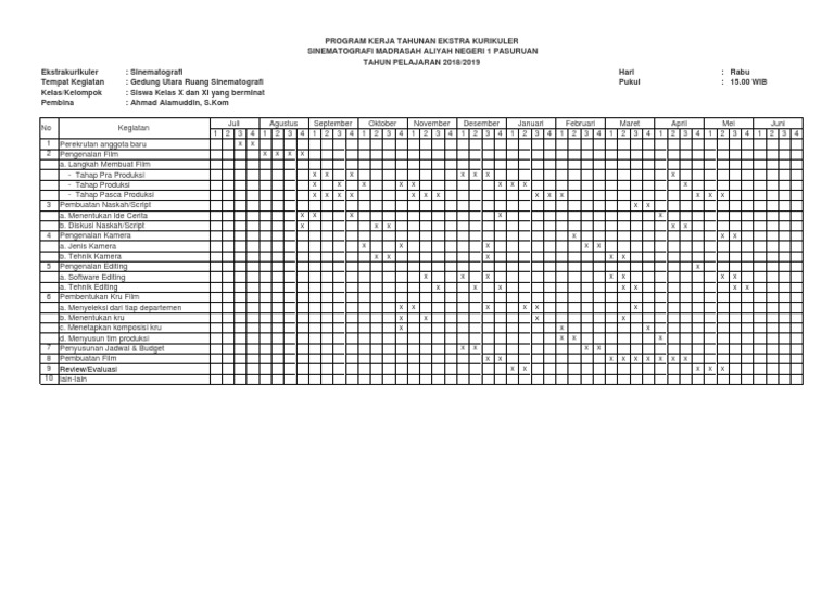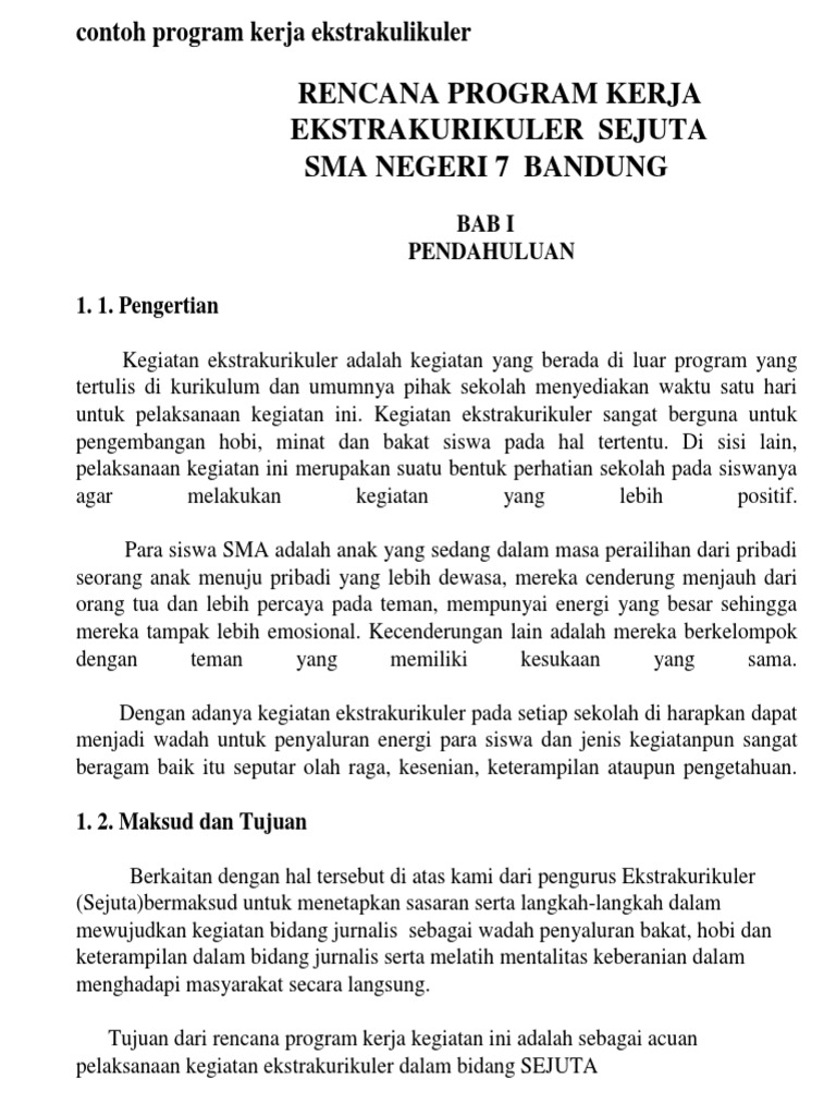 Contoh Rencana Program Kerja Ekstrakurikuler Docx Document