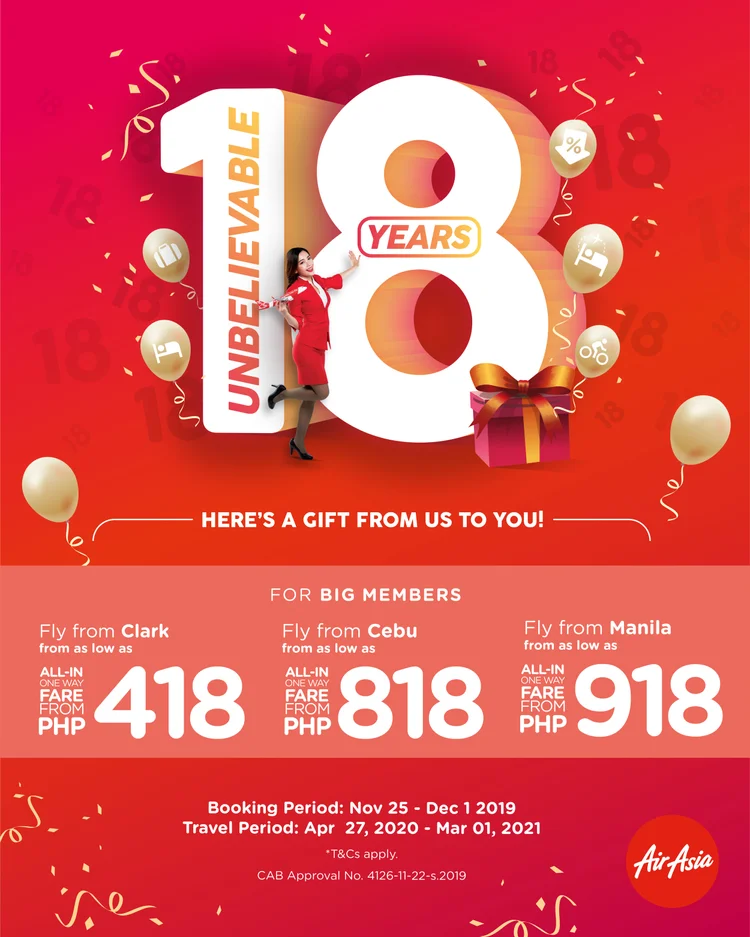 Airasia Celebrates 18 Unbelievable Years Of Flying With Fares From As Low As P418 Airasia Newsroom