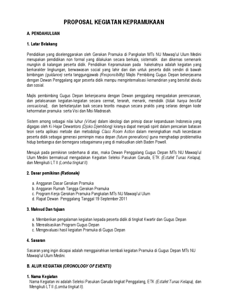 Contoh Proposal Kegiatan Pramuka Pdf Document