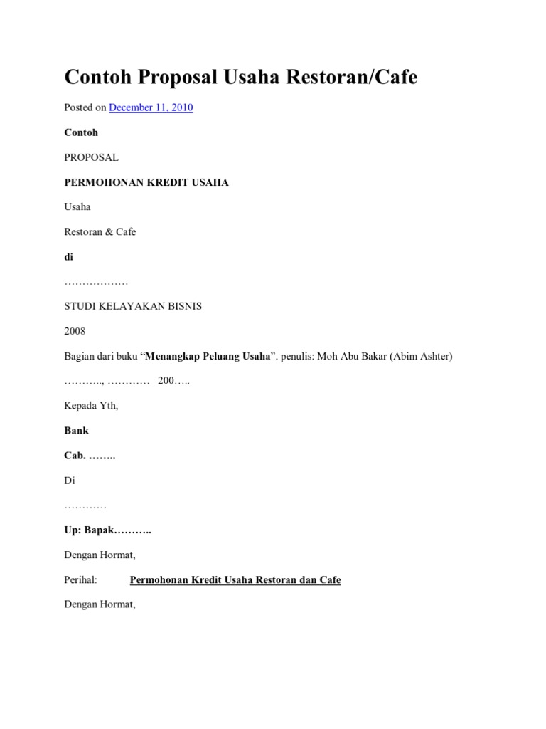 Proposal Permohonan Kredit Usaha Restoran Dan Cafe Pdf Txt