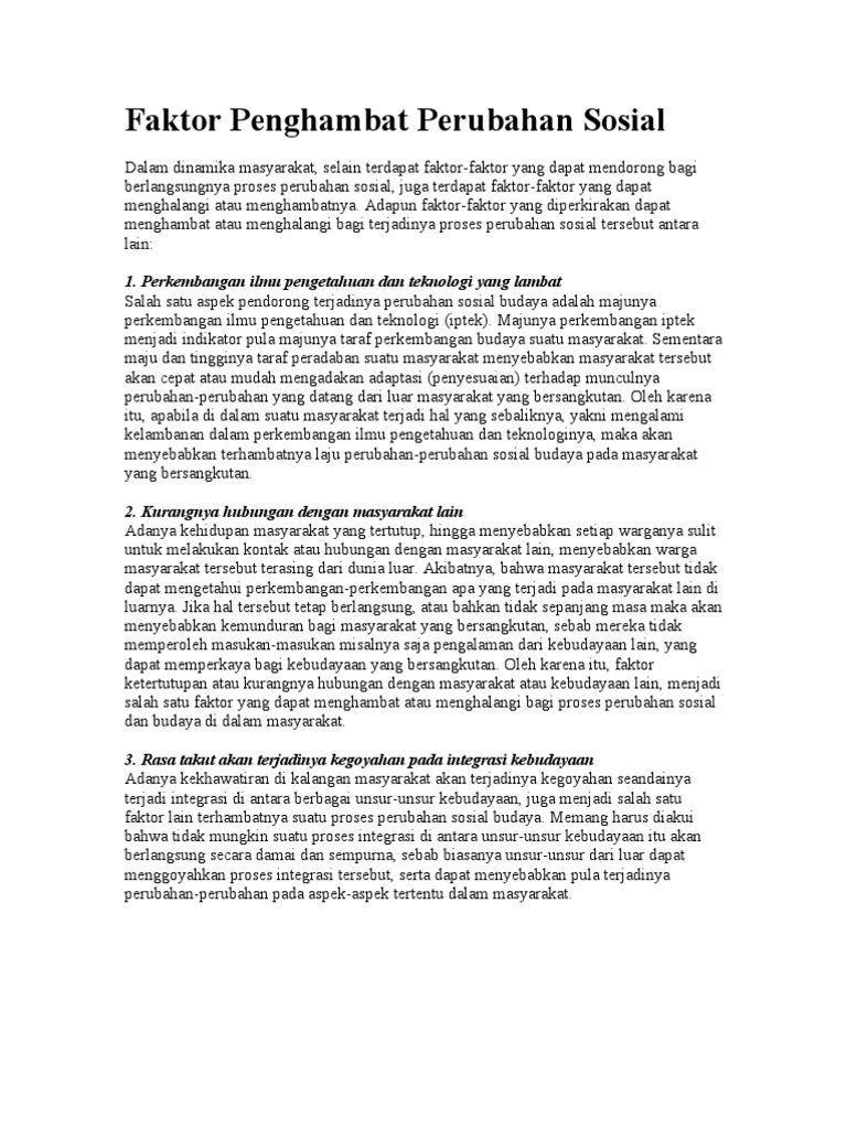 Perubahan Sosial Budaya Bentuk Faktor Pendorong Dan Penghambat