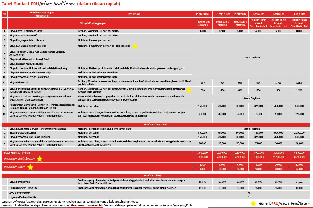 Asuransi Terbaik Indonesia Tabel Pruprime Healthcare Terbaru