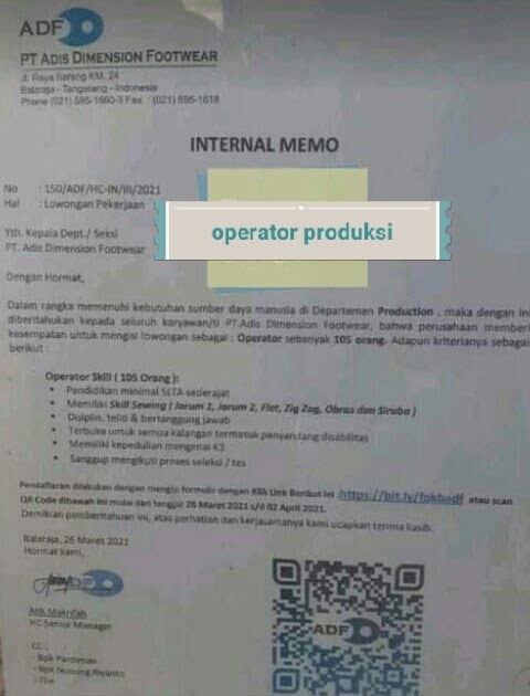 Lowongan Operator Besar Besaran Pt Adis Dimension Footwear Informasi Politik Us