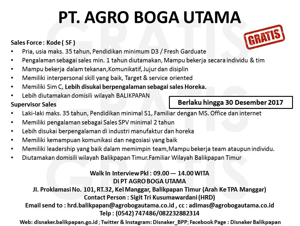 Disnaker Balikpapan Twitterissa Lowongan Pt Agro Boga Utama Lowkerbpn Https T Co Keode8t55s Twitter