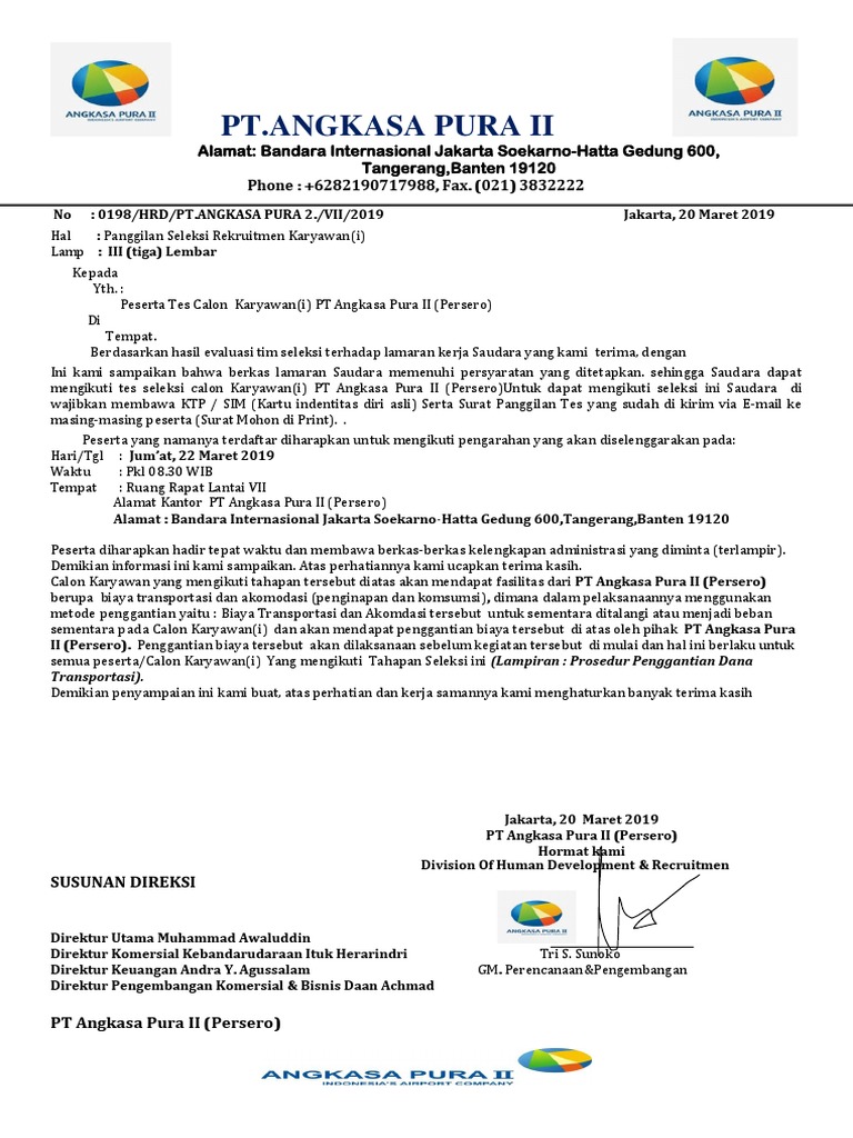 Salah Surat Panggilan Wawancara Kerja Oleh Pt Angkasa Pura Ii Juni 2020 Turnbackhoax Id