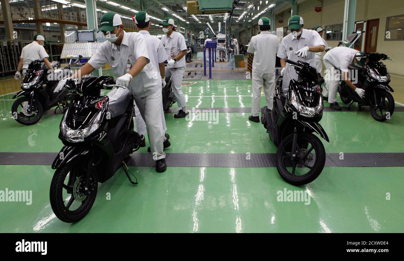Workers Carry Out A Final Check Of The Motorcycles At The Pt Astra Honda Motor Motorcycle Factory A Unit Of Astra International In Cikarang On The Outskirts Of Jakarta September 17 2011