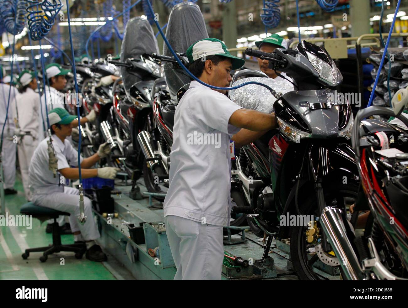Workers Assemble Motorcycles At The Pt Astra Honda Motor Motorcycle Factory A Unit Of Astra International In Cikarang On The Outskirts Of Jakarta September 17 2011 Honda Motor Co Aims To Expand