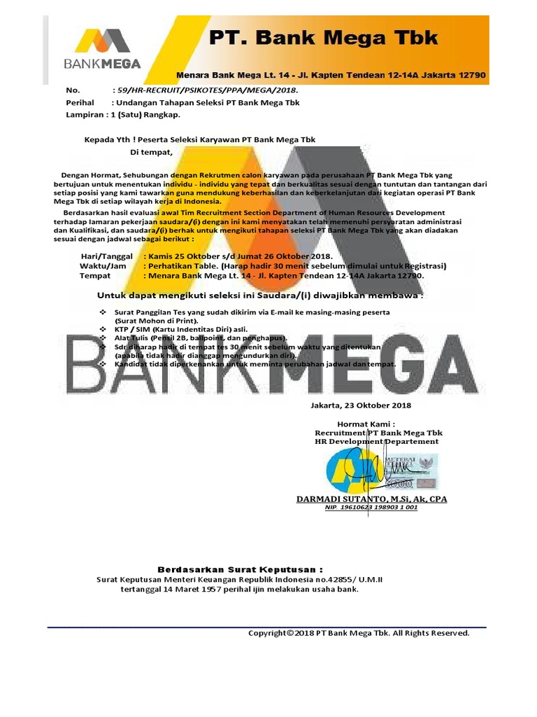 Walk In Interview Pt Bank Mega Tbk Atmago