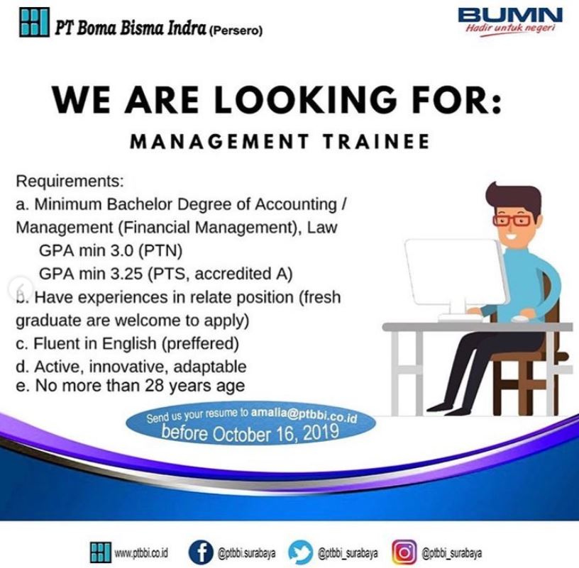 Lowongan Kerja Terbaru April 2020 Bumn Cpns 2020 Pt Boma Bisma Indra Persero Fresh Graduate Management Trainee Pt Bbi October 2019