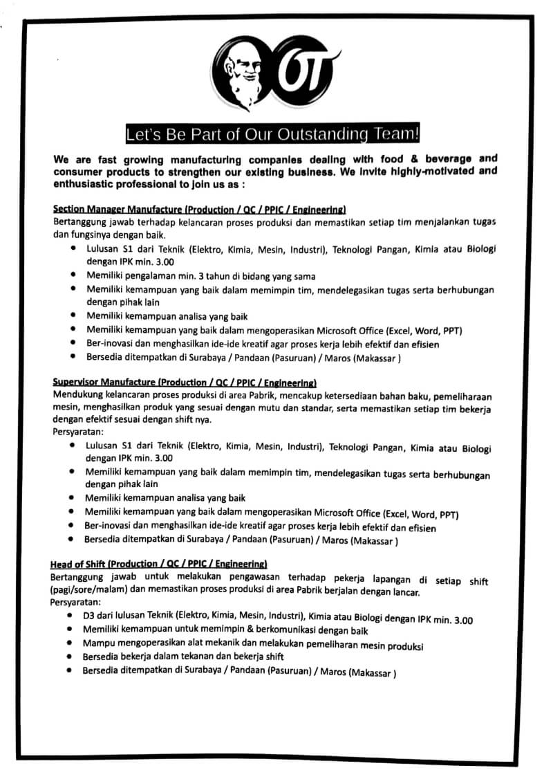 Lowongan Kerja Ot Group Juli 2021 Terbaru Di Pt Cs2 Pola Sehat Cari Lulusan S1 Ipk 3 00 Daftar Via Email Mantra Sukabumi