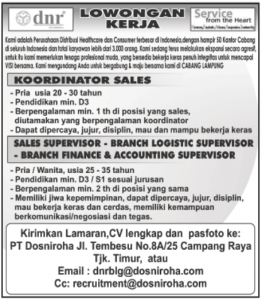 Lowongan Kerja Pt Dosniroha Cabang Lampung