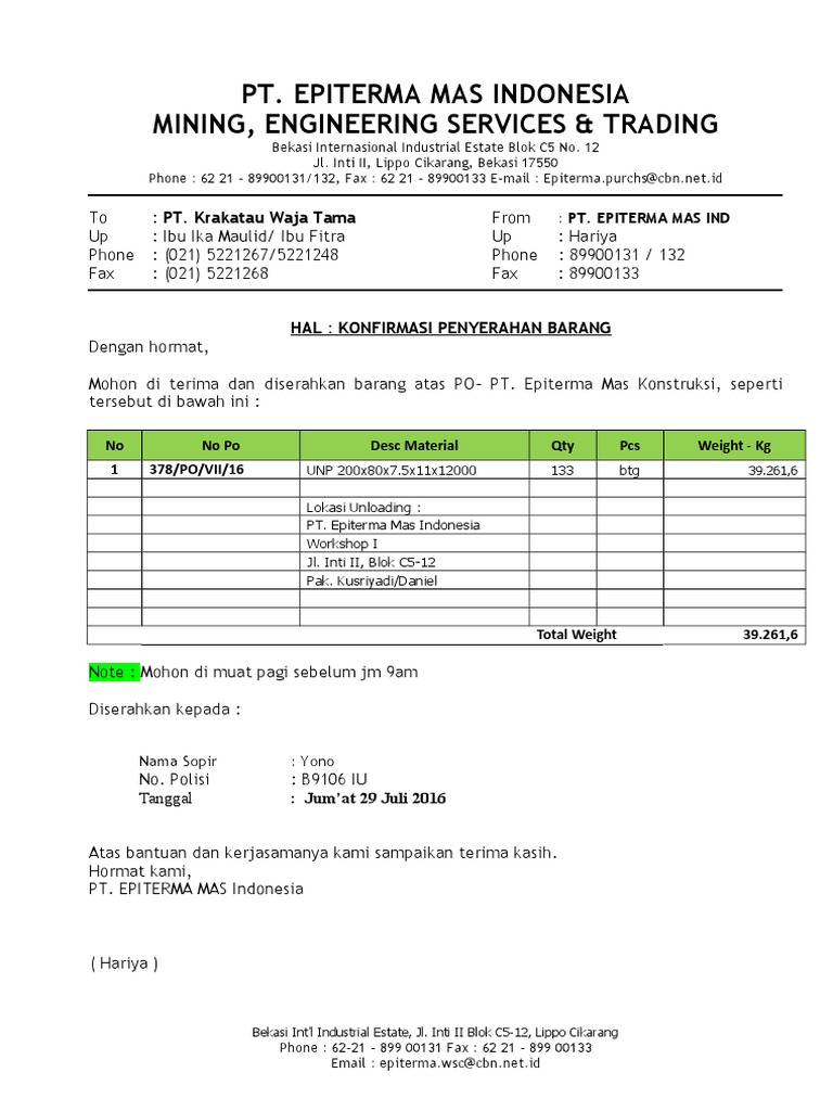 Pt Epiterma Mas Indonesia Bekasi International Industrial Estate Blok C 5 12 Telepon 62 21 89900131
