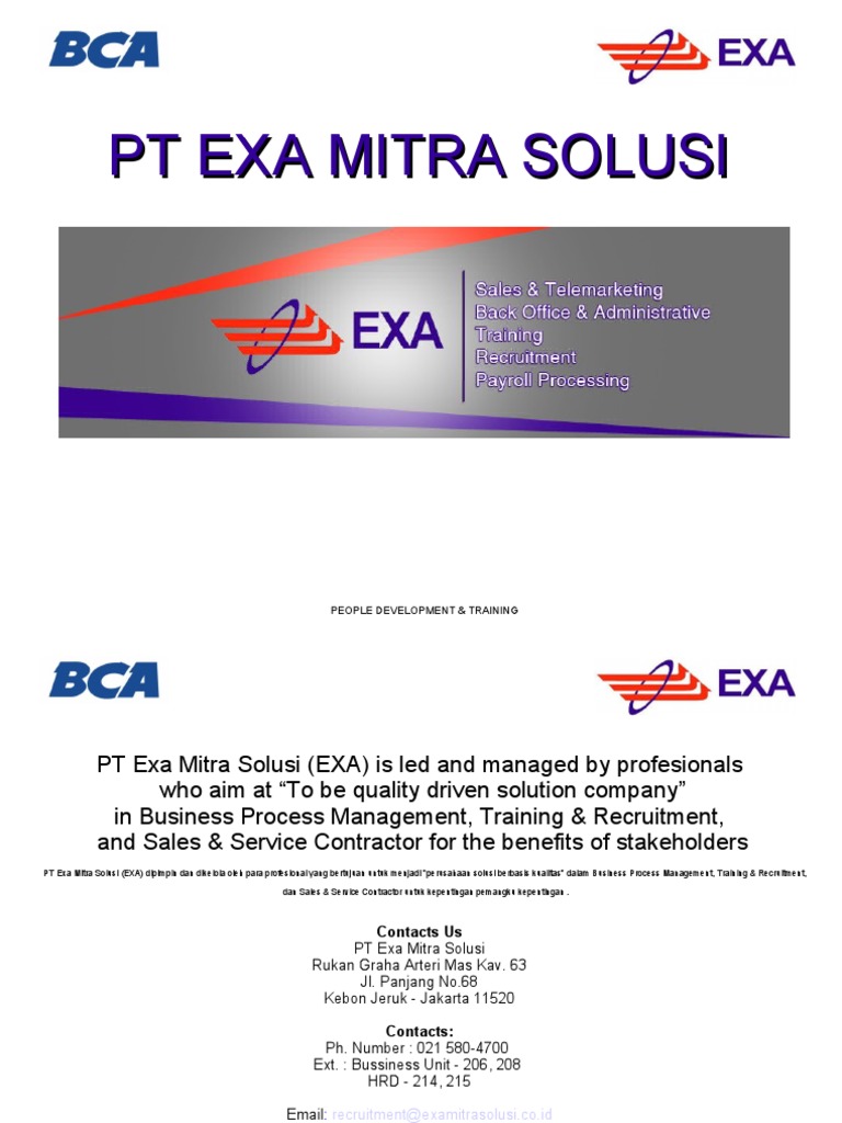 Informasi Lowongan Kerja Terbaru Tahun 2015 Pt Exa Mitra Solusi Informasi Lowongan Kerja Terbaru