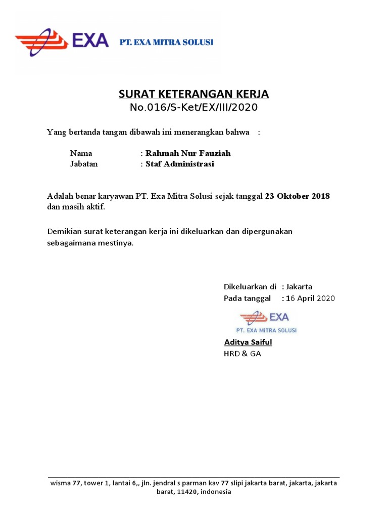 Job Quality Pt Exa Mitra Solusi Staff Verification Of Credit Svk