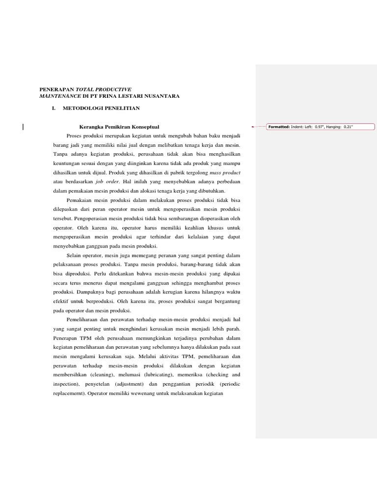 Evaluasi Penerapan Total Productive Maintenance Di Pt Frina Lestari Nusantara Oleh Sandhy Widiansyah H Pdf Download Gratis