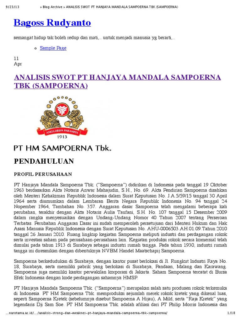 Pt Hanjaya Mandala Sampoerna Tbk Hm Sampoerna