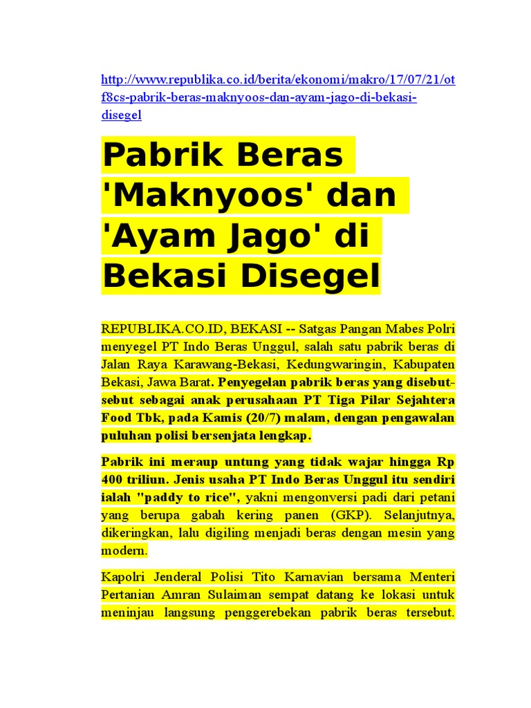 Kumpulan Berita Pt Indo Beras Unggul Polri Siap Bongkar Kejahatan Pangan Pt Ibu Bagian 2