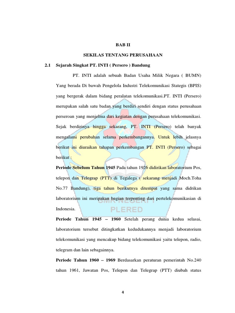 Bab Ii Tinjauan Perusahaan Pt Inti Bandung
