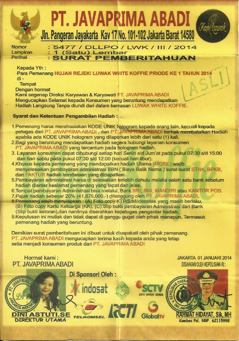 Hati Hati Undian Mobil Dari White Luwak Koffie Akriko Com