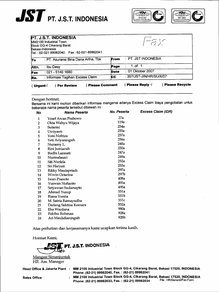 Daftar Peserta Tes Seleksi Pt Jst Indonesia