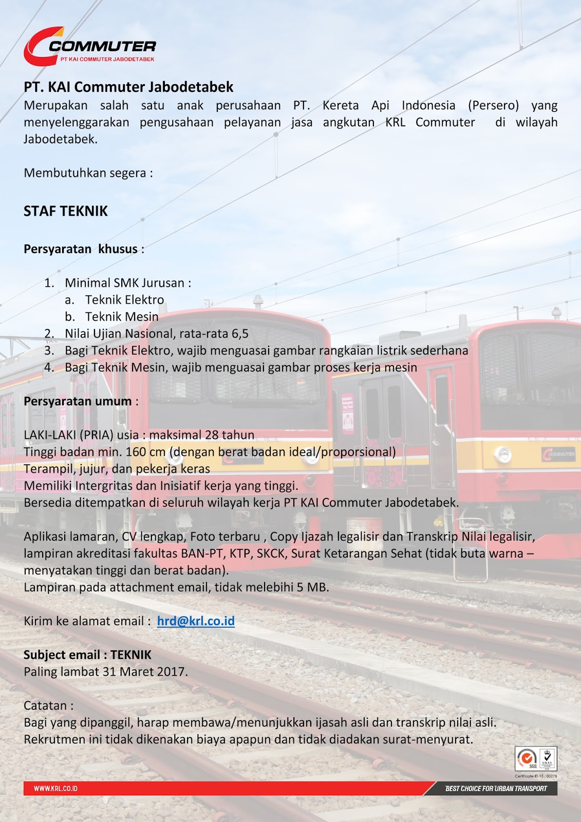 Lowongan Kerja Kereta Api Commuter Jabodetabek Tingkat Sma Hingga 30 Oktober 2016 Rekrutmen Lowongan Kerja Cpns Bumn Bulan November 2021