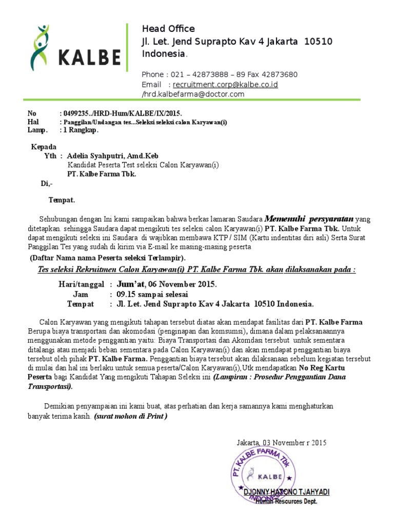 Business Development Pharma Of Pt Kalbe Farma Tbk Cempaka Putih Let Jend Suprapto Kav 4 Gedung 3 Lt 1