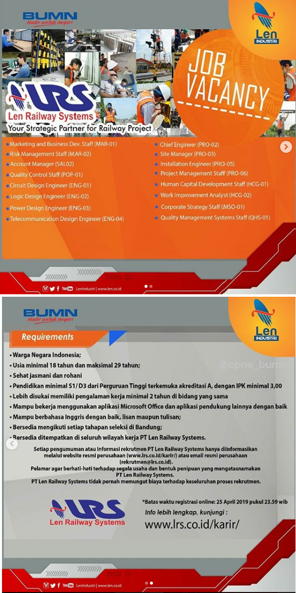 Pt Len Industri Persero Auf Twitter Hai Sobat Len Ada Lowongan Kerja Di Pt Lrs Nih Salah Satu Anak Perusahaan Pt Len Industri Siapa Tau Teman Atau Saudaramu Ada Yang Membutuhkan Registrasinya