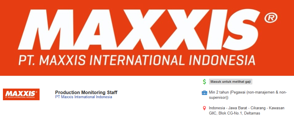 Loker Pt Maxxis International Indonesia Bekasi 2021 Lowongan4400 Net