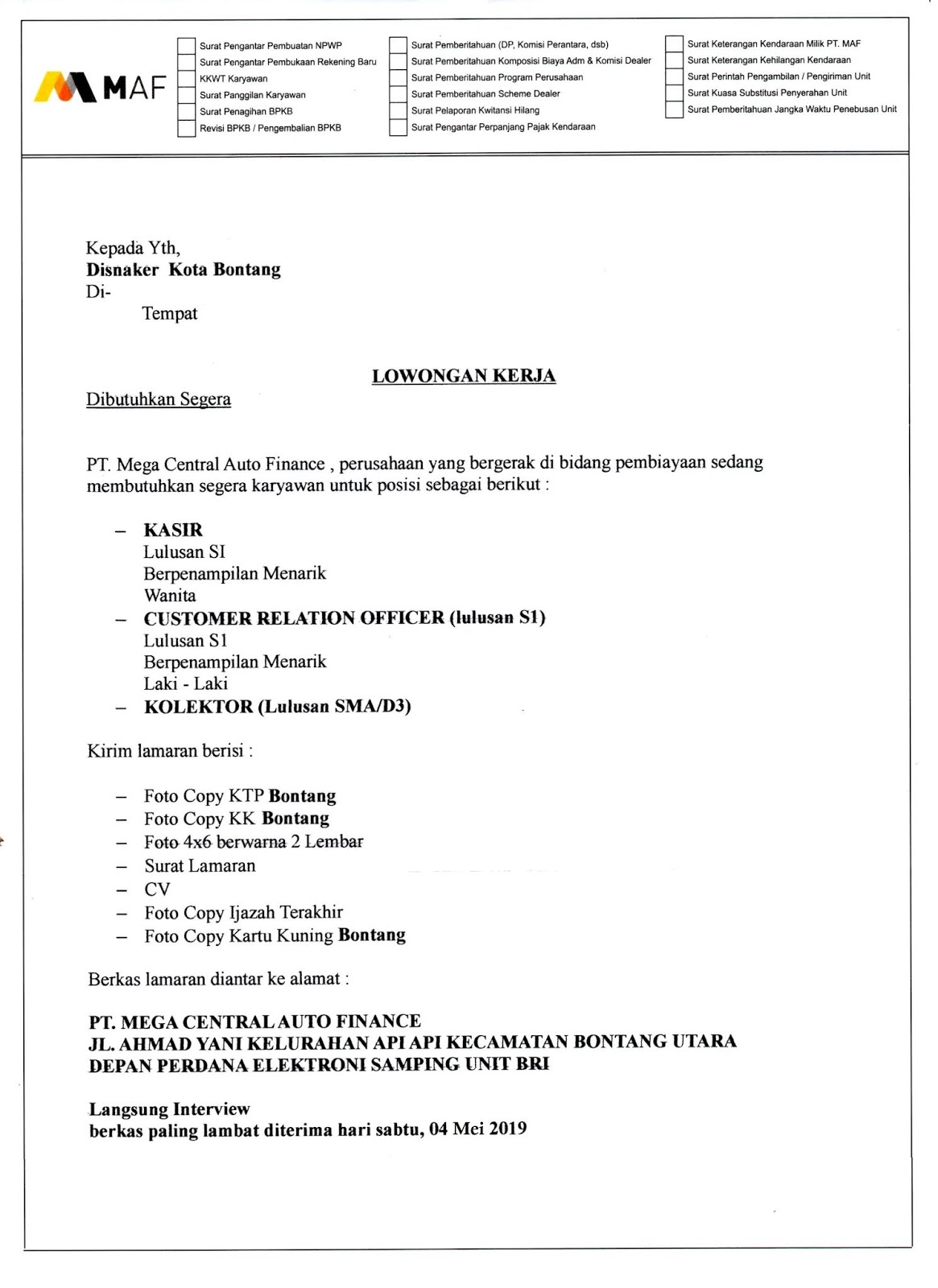 Lowongan Kerja Pt Mega Auto Finance