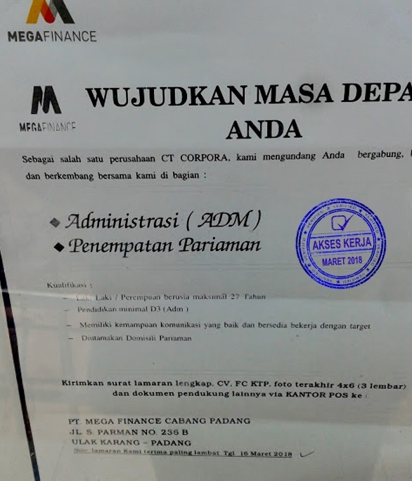 Lowongan Kerja Pt Mega Finance Padang Akses Kerja