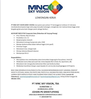 Lowongan Kerja Pt Mnc Sky Vision Tbk Kpp Bukittinggi Blog Pak Pandani