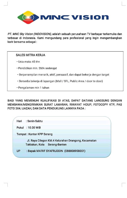 Loker Pt Mnc Sky Vision Semarang Sales Tutup 20 Agustus 2017
