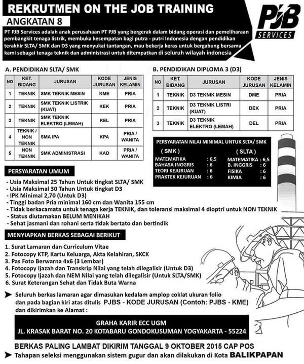 Bem Sttr Cepu On Twitter Rekrutmen On The Job Training Pjb Https T Co R59dzrwah7