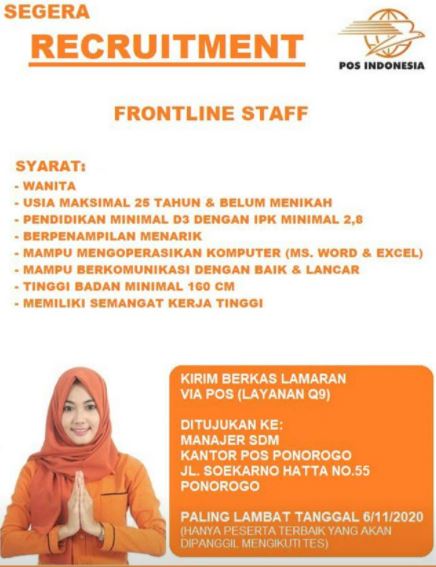 Lowongan Kerja Pt Pos Indonesia Persero Tahun 2020 Frontliner