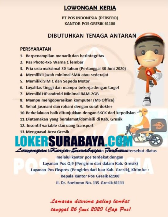 Karir Jawa Timur Di Pt Pos Indonesia Persero Gresik Juni 2020 Lowongan Kerja Surabaya September 2021 Lowongan Kerja Jawa Timur Terbaru