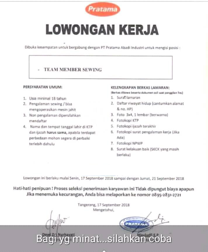 Disnakertrans Kabsmi On Twitter Kembali Dibuka Lowongan Pekerjaan Pt Pratama Abadi Industri Jx Sebanyak 500 Orang Untuk Para Pencari Kerja Silahkan Kirimkan Lamaran Anda Ke Po Box 123 Disnakertrans Atau Bisa Langsung