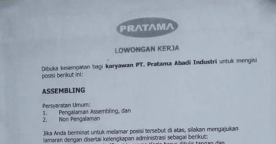 Lowongan Kerja Pt Pratama Abadi Industri Lowongan Kerja Terbaru Indonesia