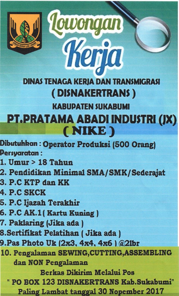 Lowongan Kerja Pt Disnakertrans Kabupaten Sukabumi Facebook