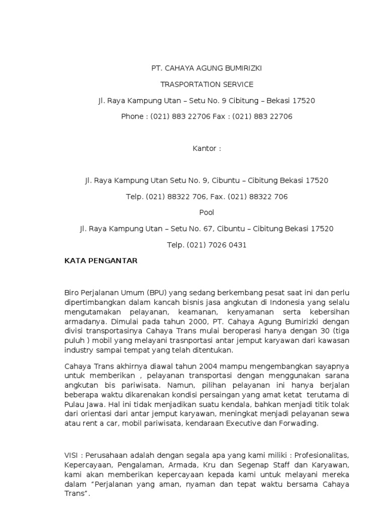 Sejarah Singkat Cahaya Agung Trans