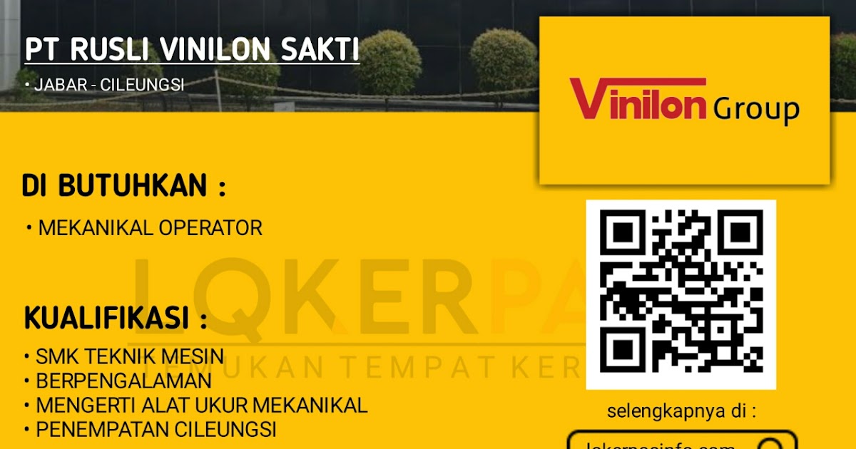 Loker Bogor Cileungsi Pt Rusli Vinilon Sakti Mekanik Operator 2021 April