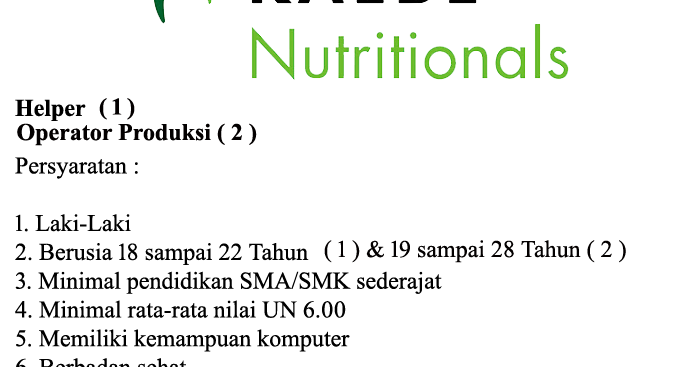 Lowongan Kerja Terbaru Lowongan Kerja Pt Sanghiang Perkasa Kalbe Nutritionals Posisi Kualifikasi Dan Melamar Baca Di Http Bit Ly Ok 2013 Batas Lamaran 31 Agustus 2021 Gabung Di Channel Telegram Nyalakan Notifikasi Agar Tidak