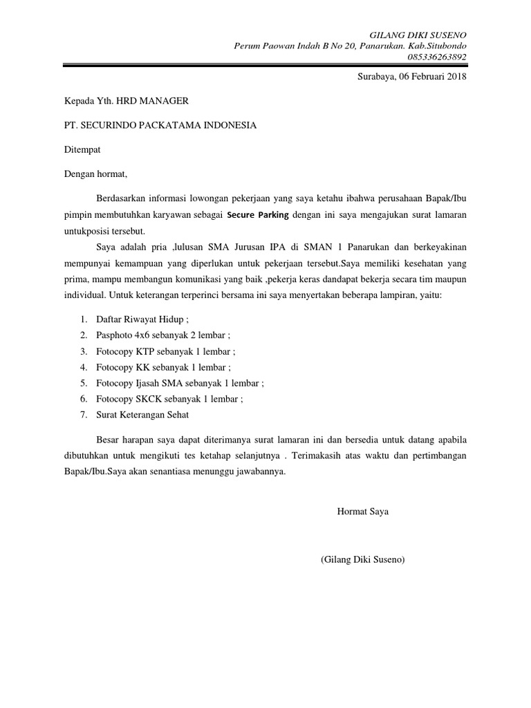 Contoh Surat Lamaran Kerja Yang Baik Dan Benar Di Pt Securindo Packatama Indonesia Blog Loker Terbaru