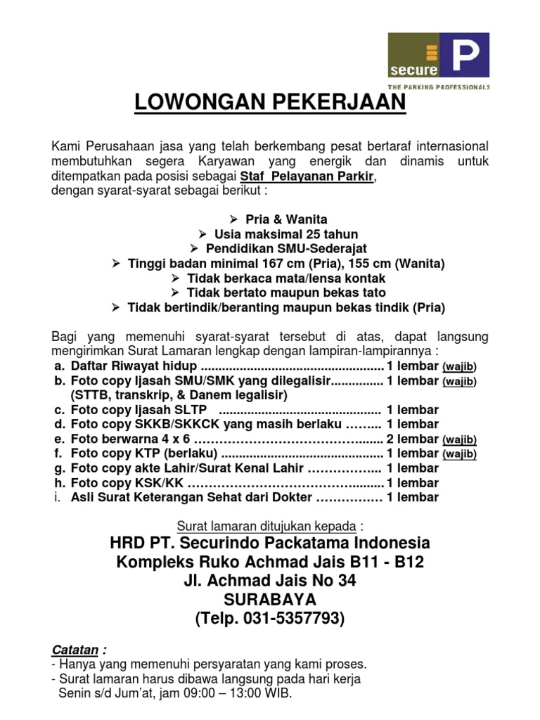 Lowongan Kerja Pt Securindo Packatama Indonesia Perusahaan Pengelola Jasa Perparkiran