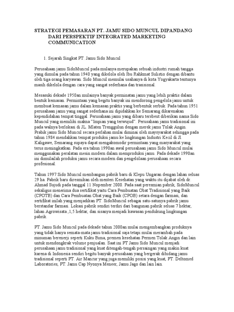 Strategi Pemasaran Pt Sido Muncul Pdf