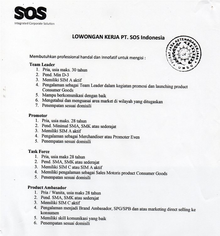 Loker Pt Sos Januari 2017 Pjk Umsu