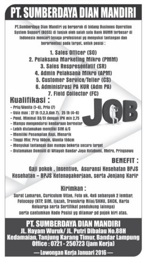 Lowongan Kerja Pt Sumber Daya Dian Mandiri Juli 2017 Www Infokantorpos Com